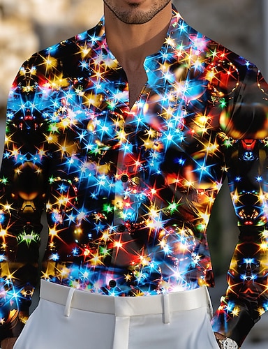 Christmas Miesten Kimalteleva glitteri Jouluvalot Paita Satiini paita Pukupaita Pitkähihainen Muoti rento Juhla Pyhäpäivä Kesä Kevät Syksy Sänkyjen avaus 3D-tulostus Napitettavat paidat Sininen