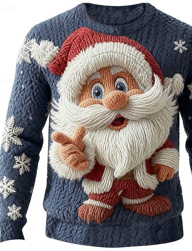 Christmas Miesten Kuvitettu Joulupukki T-paita Pitkähihainen T-paita 3D-tulostus Tiukka pyöreä kaula-aukko Paita Muoti Suunnittelija Vapaa-aika Urheilu ja ulkoilu Pyhäpäivä Bile Sininen Rubiini