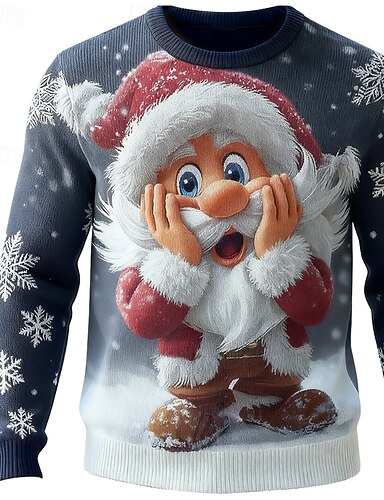 Christmas Miesten 3D Vanha mies T-paita Pitkähihainen T-paita 3D-tulostus Tiukka pyöreä kaula-aukko Paita Muoti Perus Katu Kausaliteetti Päivittäin Vaalean sininen Tummanharmaa #1 Purppura Kesä Kevät