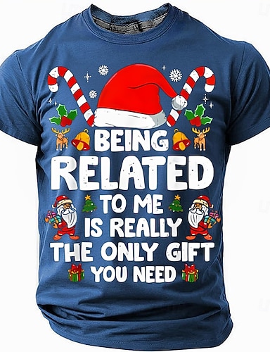 Christmas Miesten Joulupukki T-paita Lyhythihainen T-paita 3D-tulostus Tiukka pyöreä kaula-aukko Paita Päivittäin Suunnittelija Taiteellinen Loma Juhla Katu Sininen Musta Vaalean harmaa Kaikki