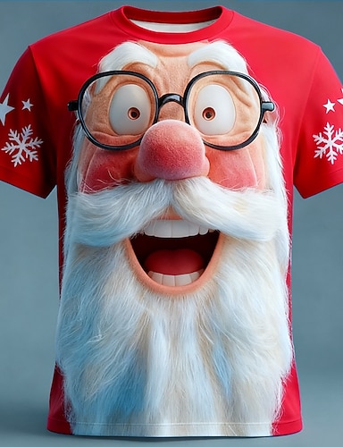 Christmas Miesten Joulupukki 3D sarjakuva T-paita Lyhythihainen T-paita 3D-tulostus Tiukka pyöreä kaula-aukko Paita Päivittäin Suunnittelija Taiteellinen Loma Juhla Katu Punainen 4 Punainen 3
