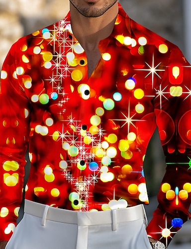 Christmas Miesten Kimalteleva glitteri Jouluvalot Paita Satiini paita Pukupaita Pitkähihainen Muoti rento ulko- Juhla Pyhäpäivä Kevät Syksy Sänkyjen avaus 3D-tulostus Napitettavat paidat Rubiini