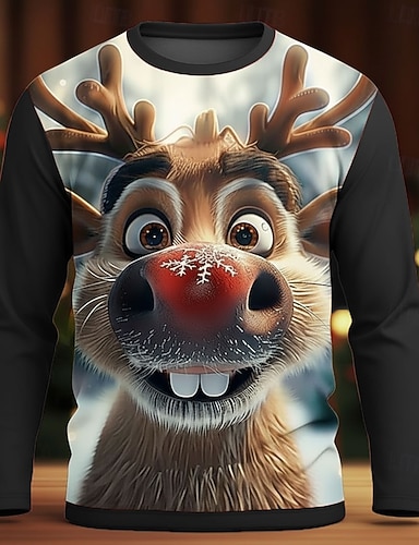 Christmas Miesten Hirvi Hauska T-paita Pitkähihainen T-paita 3D-tulostus Tiukka pyöreä kaula-aukko Paita Muoti Perus 3D Katu Kausaliteetti Päivittäin Sininen Musta Rubiini Kesä Kevät Vaatetus S M L