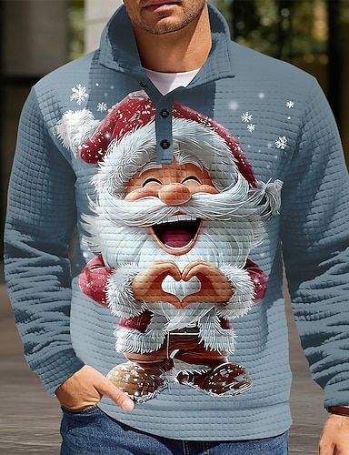Christmas Miesten Piirretty Joulupukki Poro Paita Button Up paita Pitkähihainen Hauska ulko- Pyhäpäivä Kevät Syksy Sänkyjen avaus 3D-tulostus kauluspaidat Sininen Valkoinen 1 Valkoinen Punastuvan