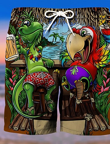 Miesten Piirretty tipu Hauska slangi Vuoratut shortsit 2 in 1 uimashortsit Uimashortsit Keskivyötärö Havaijilainen Pyhäpäivä Sivutaskut Compression Linerin kanssa Joustava kiristysnyöri vyötäröllä