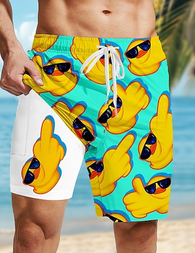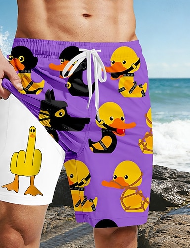Miesten 3D sarjakuva Hauska Ankka Vuoratut shortsit 2 in 1 uimashortsit Uimashortsit Keskivyötärö Havaijilainen Pyhäpäivä Sivutaskut Compression Linerin kanssa Joustava kiristysnyöri vyötäröllä