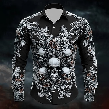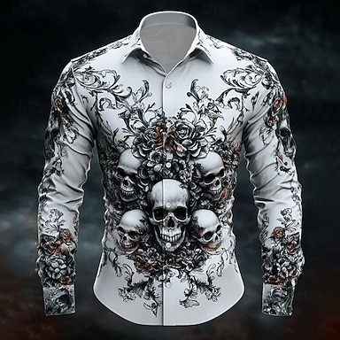 Miesten Pääkallot Kuolleiden päivä Kukat Paita Button Up paita Rento kauluspaita Pitkähihainen Dark Punk Gothic Loma Päivittäin Katuvaatteet Kesä Kevät Sänkyjen avaus 3D-tulostus kauluspaidat Musta