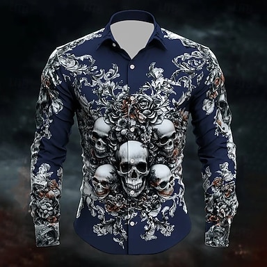 Miesten Pääkallot Kukka / kukka Kuolleiden päivä Paita Button Up paita Pitkähihainen Dark Punk Gothic ulko- Pyhäpäivä Kesä Kevät Sänkyjen avaus 3D-tulostus kauluspaidat Sininen Rubiini Purppura Apila