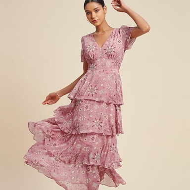 kukkakuvioinen liehuva sifonkikerroksinen maksimekko