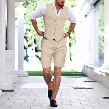 Miesten Pellava puvut Ranta häät Kausaliteetti Keltainen Rubiini Kevät kesä Puku Lovikäänne Muoti Päivittäin Yhtenäinen Räätälöity istuvuus 2-osainen setti Yksirivinen kaksi nappia