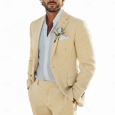 Miesten Smokit Seersucker-puvut Ranta häät Keväthäät Keltainen Punastuvan vaaleanpunainen Kevät kesä Puku Lovikäänne Vapaa-aika Juhla Raidoitettu Räätälöity istuvuus 2-osainen setti Yksirivinen kaksi