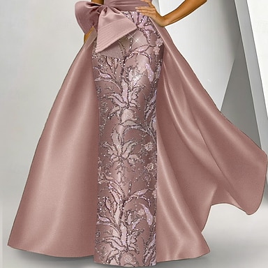 A-linja Tuubi Kokopitkä Helmillä koristeltu Muodollinen mekko Morsiamen äidin mekko Iltapuku Tanssiaispuku hameen päällä Muodollinen mekko Tyylikäs Kimalteleva 3/4 hiha Olkaimeton Häät Muodollinen