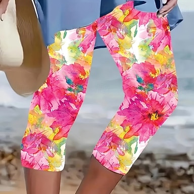 Naisten leggingsit shortsit 3D-printti chinot lomalle rento sukkahousut lyhyt korkea vyötärö kukkakuviolla korkea leikkaus mukavuus hengittävä nopeasti kuivuva joustava ulkoilma katu arkikäyttöön