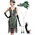 Setti Möly 20s 1920-luku Polvipituinen Mekot Mekko Asut lisävarusteiden kanssa Hihaton Suuri Gatsby charleston Paljetti Tupsu Feather V kaula-aukko Naamiaispuku Naisten Karnevaali Uusi vuosi