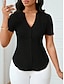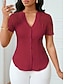 Naisten T-paita Rypytetty Tavallinen Muoti Tyylikäs Klassinen Lyhythihainen V kaula-aukko Tavalliset topit Päivittäin Bile Viikonloppu Musta Valkoinen Viini Fuksia Ruusun punainen Kesä Kevät