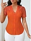 Naisten Pusero Pitsi Topit Pitsi Tilkkutäkki Yhtenäinen väri Tyylikäs Perus Vapaa-aika Lyhythihainen V kaula-aukko Tavalliset topit Päivittäin Valkoinen Purppura Fuksia Kulta Apila Kesä Kevät