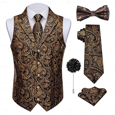Retro / vintage Möly 20s 1920-luku Asut Liivit Tarvikesarja Herrasmies Gangsteri Paisley-kuvio Jakardi Naamiaispuku Miesten Karnevaali puku 7 PCS Joulu Halloween Karnevaali Naamiaiset Cocktailjuhla