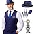Retro / vintage Möly 20s 1920-luku Asut Liivit Tarvikesarja Herrasmies Gangsteri Naamiaispuku Miesten Karnevaali puku 8 kpl Joulu Halloween Karnevaali Naamiaiset Cocktailjuhla Teematapa Aikuisten