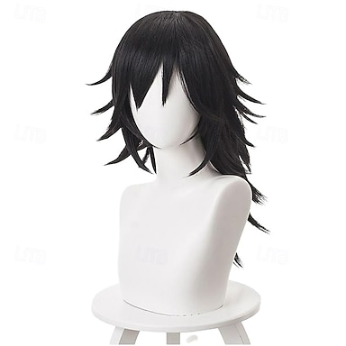 cosplay puku peruukki synteettinen peruukki kihara löysä kihara epäsymmetrinen peruukki pitkät mustat synteettiset hiukset 20 tuumaa miesten musta