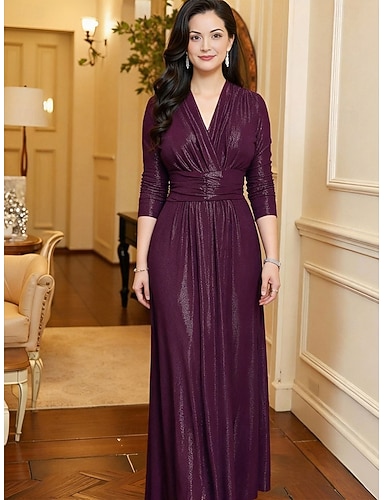 A-linja Kokopitkä Tanssiaispuku Häävieraspuku Muodollinen mekko Morsiammen äidin asu Pitkähihainen V kaula-aukko Tyylikäs Juhla Kimmaltava ja hohtava Häävieras Pyhäpäivä Cocktailjuhla Satiini Glitter