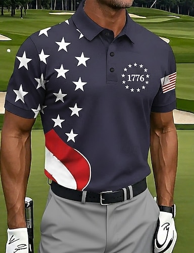 4. heinäkuuta 2026 250. Miesten Yhdysvaltain Yhdysvaltain lippu Golf Urheilu poolopaidat Lyhythihainen Poolopaidat Kauluspaidat Vapaa-aika Urheilu- ja treenivaatteet Festivaalin asu Napit Kesä Rubiini