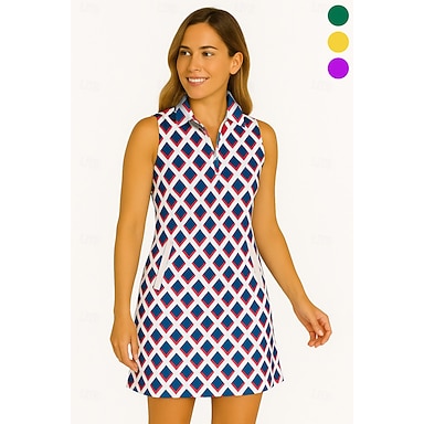 Naisten Geometrinen Tennismekko golf mekko Hihaton mekko Hihaton Vetoketju UV suoja Elastinen Hengittävä Tennis Golf Sulkapallo Pikeepaita Hameet Keltainen Sininen Purppura Tennisvaatteet