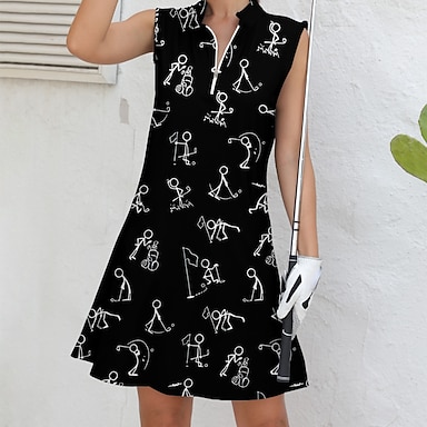 Naisten golf mekko Musta Valkoinen Hihaton Piirretty Naisten Golfasut Vaatteet Asut Vaatteet
