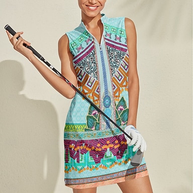 Naisten golf mekko Yan pink Järven sininen Valkoinen Hihaton Aurinkovoide Tennis asu Kukka Paisley-kuvio Naisten Golfasut Vaatteet Asut Vaatteet