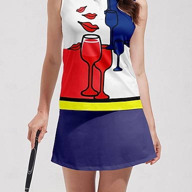 Naisten golf mekko Musta Valkoinen Hihaton Piirretty Naisten Golfasut Vaatteet Asut Vaatteet