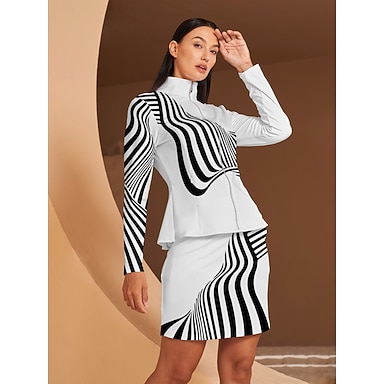 Naisten Golftakit Musta ja valkoinen Pitkähihainen Topit Naisten Golfasut Vaatteet Asut Vaatteet