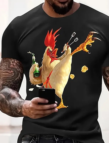 Miesten Hauska Hanhi T-paita Lyhythihainen T-paita 3D-tulostus Tiukka pyöreä kaula-aukko Paita Liioiteltu Suunnittelija Juhla Pyhäpäivä Musta Rubiini Sininen Kesä Kevät Vaatetus S M L XL XXL XXXL