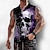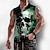 Miesten Pääkallot Luuranko Paita Button Up paita Hihaton paita Hihaton Tumma goottilainen tyyli ulko- Kausaliteetti Kesä Kevät Sänkyjen avaus 3D-tulostus Kaksi etutaskua Musta Purppura Apila Khaki