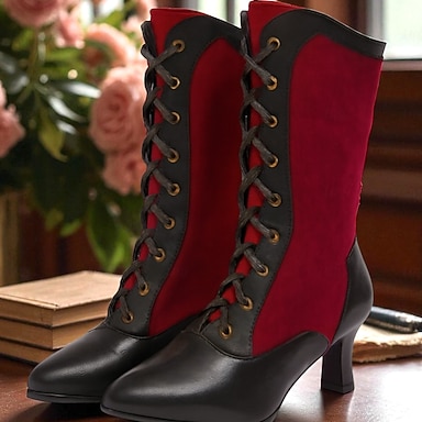 naisten vintage victorian nauhasaappaat - punaiset ja mustat goottilaiset steampunk-korkoiset saappaat cosplay-asuihin, pukuihin ja joulutilaisuuksiin
