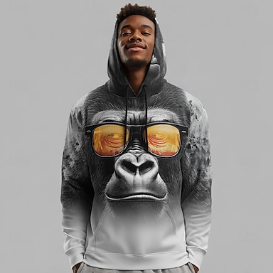 Miesten 3D Print Gorilla Huppari College Muoti Tyylikäs 3D Pitkähihainen Tiukka pyöreä kaula-aukko Koti Katuvaatteet Juhla Musta Valkoinen Kurenauha Syksy Talvi Suunnittelija S M L XL XXL XXXL
