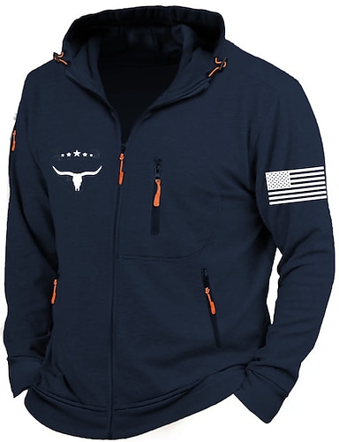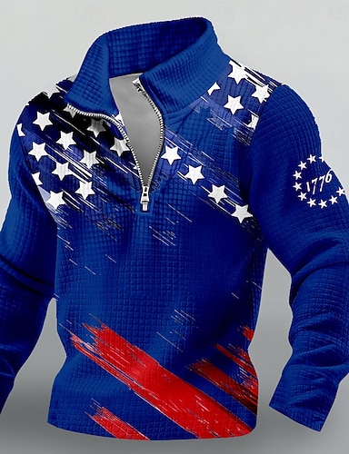 Itsenäisyyspäivä Isänmaallinen Naisten Huppari Yläosa Vetoketjullinen Huppari Graafinen Raidallinen Muoti Rentoa Pitkät Hihat Pyöreä Kaula Kaupunkiasu Päivittäinen Käyttö Vetoketju Painatus Sininen
