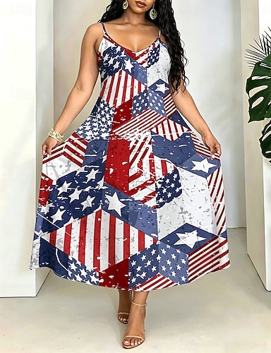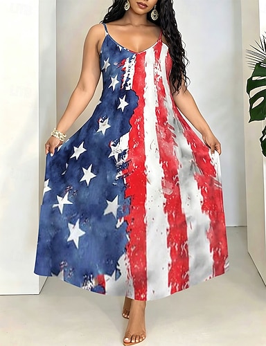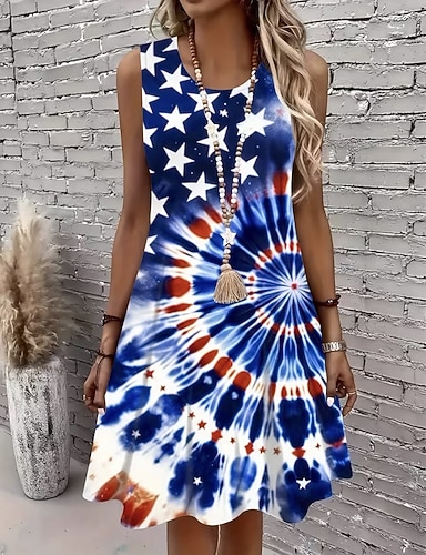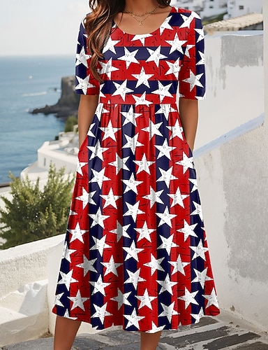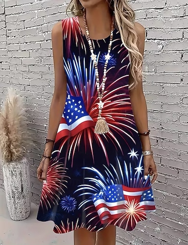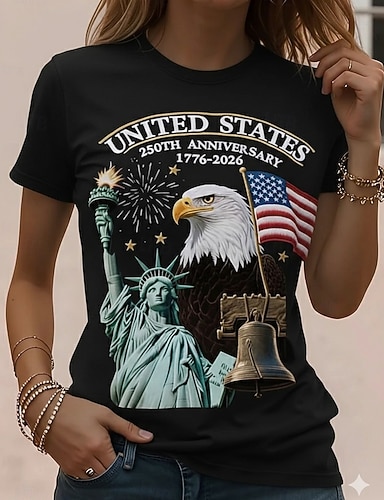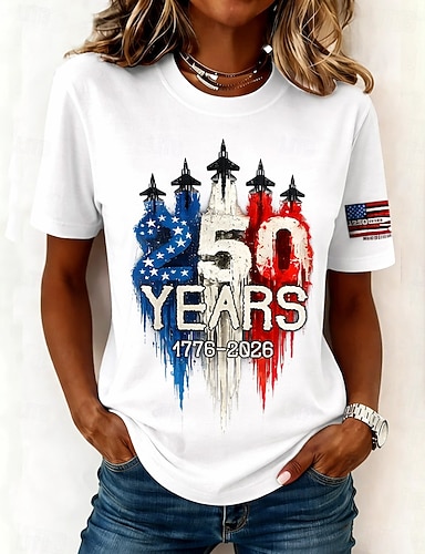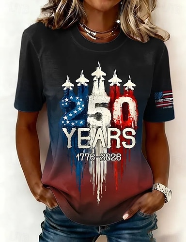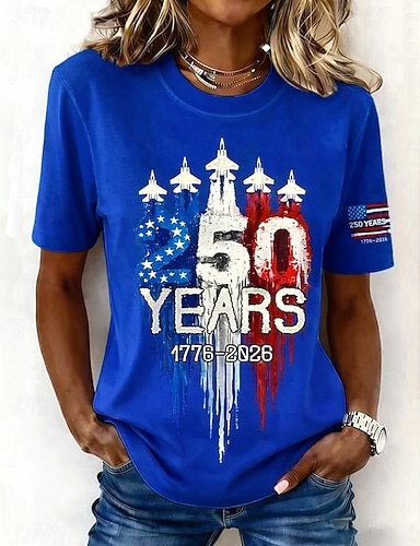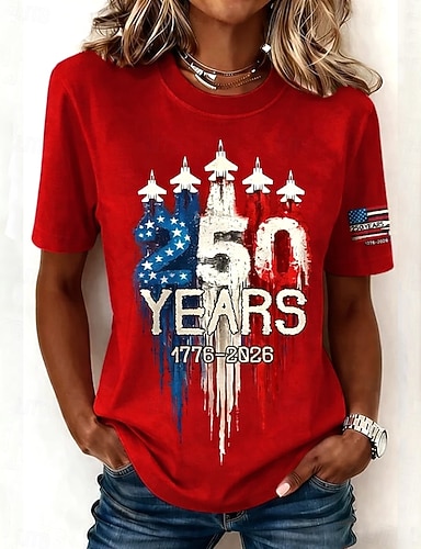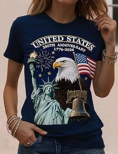 itsenäisyyspäivän patrioottinen naisten T-paita graafinen lippu vintage muoti tyylikäs lyhythihainen pyöreäkauluksinen säännölliset hupparit päivittäin viikonloppu värikäs painatus punainen sininen