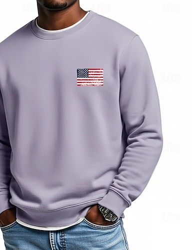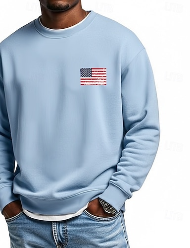 4. heinäkuuta 2026 250. muistopäivä miesten katumuoti graafinen Yhdysvaltain lippu pyöreä kaula pitkähihaisessa hupparissa rentoa ulkoilua varten katukulttuuriin