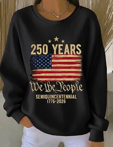 itsenäisyyspäivän patrioottinen naisten teksturoitu pullover collegepaita graafinen rento pitkähihainen pyöreäkauluksinen säännölliset hupparit rento koti katu sininen musta punainen oranssi vihreä