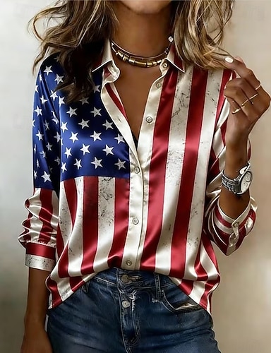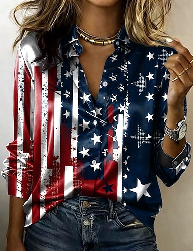 itsenäisyyspäivä Amerikan vuosipäivä patriotinen naisten pullover-huppari graafinen kirjain rento printti pitkähihaiset puolipainike rento päivittäinen vaatetus urheilu sininen musta valkoinen