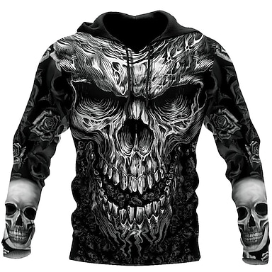 Miesten Väripalikka Pääkallot Graafiset tulosteet Pokeri Huppari Hupparit College Suunnittelija Urheiluasut Vapaa-aika Iso ja pitkä Pitkähihainen Hupullinen Kausaliteetti Päivittäin Urheilu Musta ja