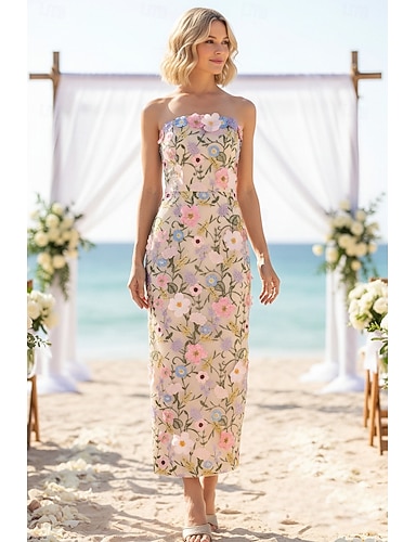 Tuubi Nilkkapituinen Häävieraspuku Häävieraspuvut Tyylikäs Hihaton Olkaimeton Häät kanssa Kirjailtu kukka
