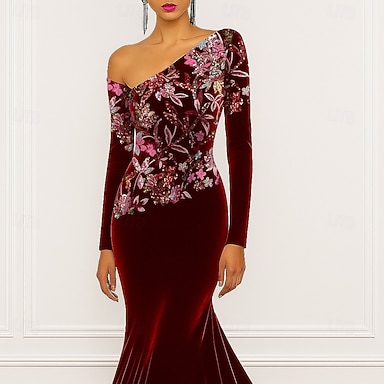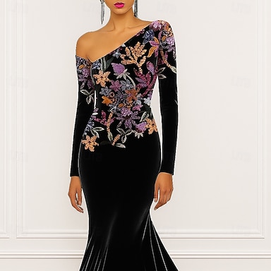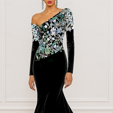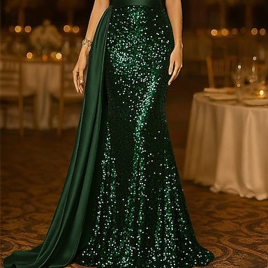 Trumpetti merenneito Hipaisulaahus Polven yli Iltapuku Tanssiaispuku hameen päällä Muodollinen mekko Tyylikäs Sivuhalkio Silkkinen Pitkähihainen poolokaulus Muodollinen Satiini Paljetein koristeltu
