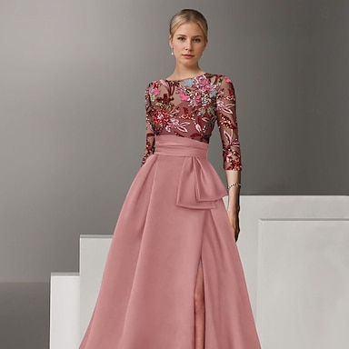 A-linja Kokopitkä Helmillä koristeltu Muodollinen mekko Morsiamen äidin mekko Iltapuku Tanssiaispuku hameen päällä Muodollinen mekko Tyylikäs Väripaletti Korkea jaettu Puolihiha Paitapuserokaula-aukko