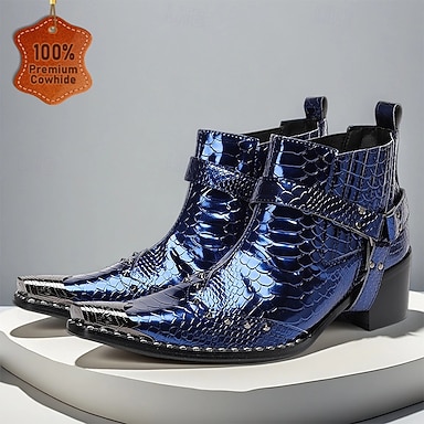 Miesten premium-luokan siniset naudannahkaiset krokotiilikuvioiset nahkaiset chelsea-saappaat, tyylikkäät Harley-Davidson-moottoripyöräsaappaat rock-konsertteihin, juhliin, yökerhoihin ja lavalle
