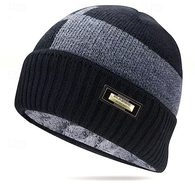 Miesten Sukupuolineutraali Pipo Talvihatut Pipot Neulo hattu Talvipipo Musta Laivaston sininen Akryylikuidut Kudottu Kodikas Arki-asut Bile Väripalikka Lämmin