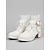 Naisten valkoiset satiinista valmistetut nilkkakorkokengät helmikoristeilla - elegantit teräväkärkiset hääkengät morsiamille ja juhliin