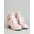 Naisten pinkit mokkanahkaiset nilkkurit rusetilla ja helmikoristeella, elegantit kissankorkoiset pukusaappaat juhliin ja muodollisiin tilaisuuksiin