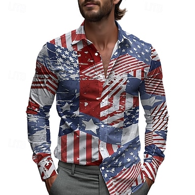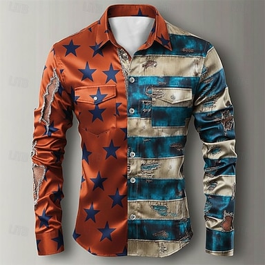 Miesten helvetinliekit amerikkalainen US-lippu kotka paita napitettava paita pitkät hihat vintage retro ulkona rento loma kevät syksy käännettävä 3D-printattu kauluspaita khaki