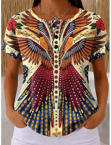 Naisten Waffle Rakennettu Neule Paidan T-paita Väri Blokki Grafiikka Heimo Tyylikäs Klassinen Lyhythihainen Henley Regular Paidan Päivittäinen Urheilu Oranssi Kesä Kevät