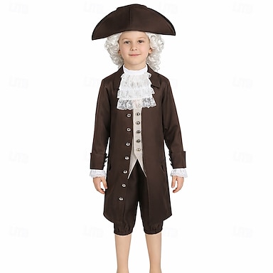 Setti Yhdysvaltojen 250-vuotisjuhla Retro / vintage Keskiaika Asut Pitkähihainen George Washington Naamiaispuku Poikien Karnevaali Itsenäisyyspäivä Naamiaiset 4. heinäkuuta Lasten Takki Housut Hattu